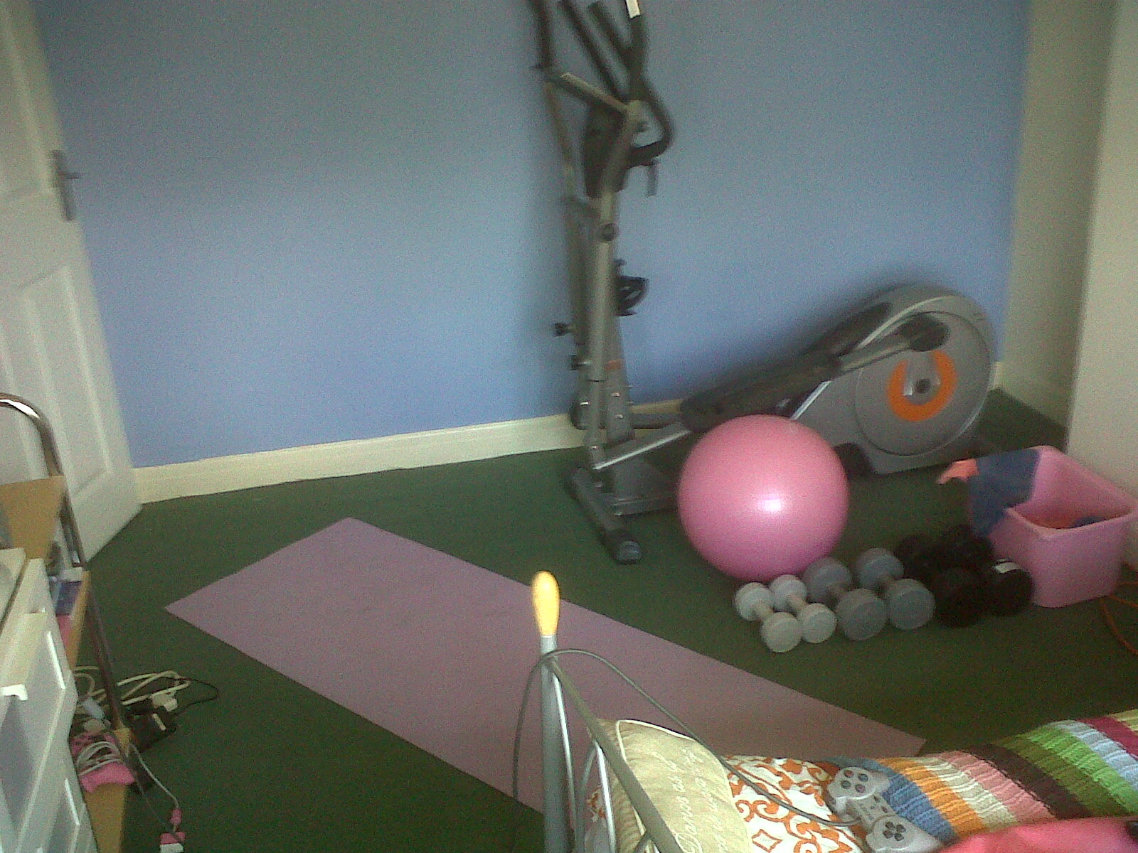 Thought i'd put a couple of pics up to show the room where I usually work out. This is our spare room. Got the cross trainer in there and some weights, swiss ball, resistance bands etc