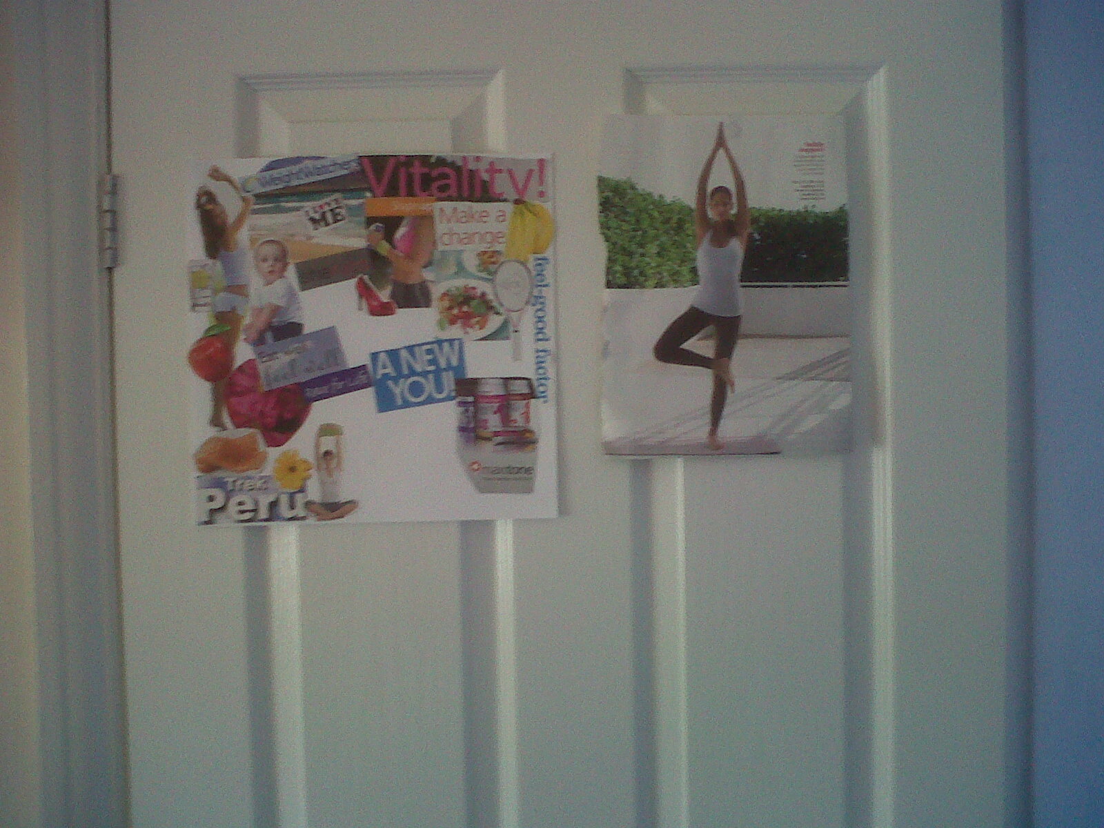 On the door in front of the cross trainer I have my inspiration board/pictures. Keeps me going!
