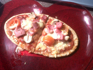 Lunch I made me and Phil wholewheat pitta pizza. So yummy and works out at 3.5 ww points. Also had a mango and Activia Cherry yogurt.