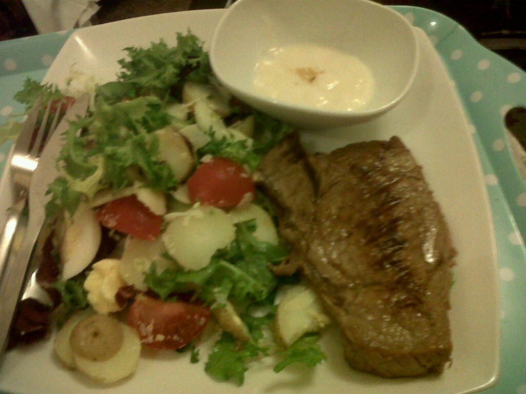 Dinner was lean rumpsteak with salad with a chopped boiled egg and couple of salad potatoes.
