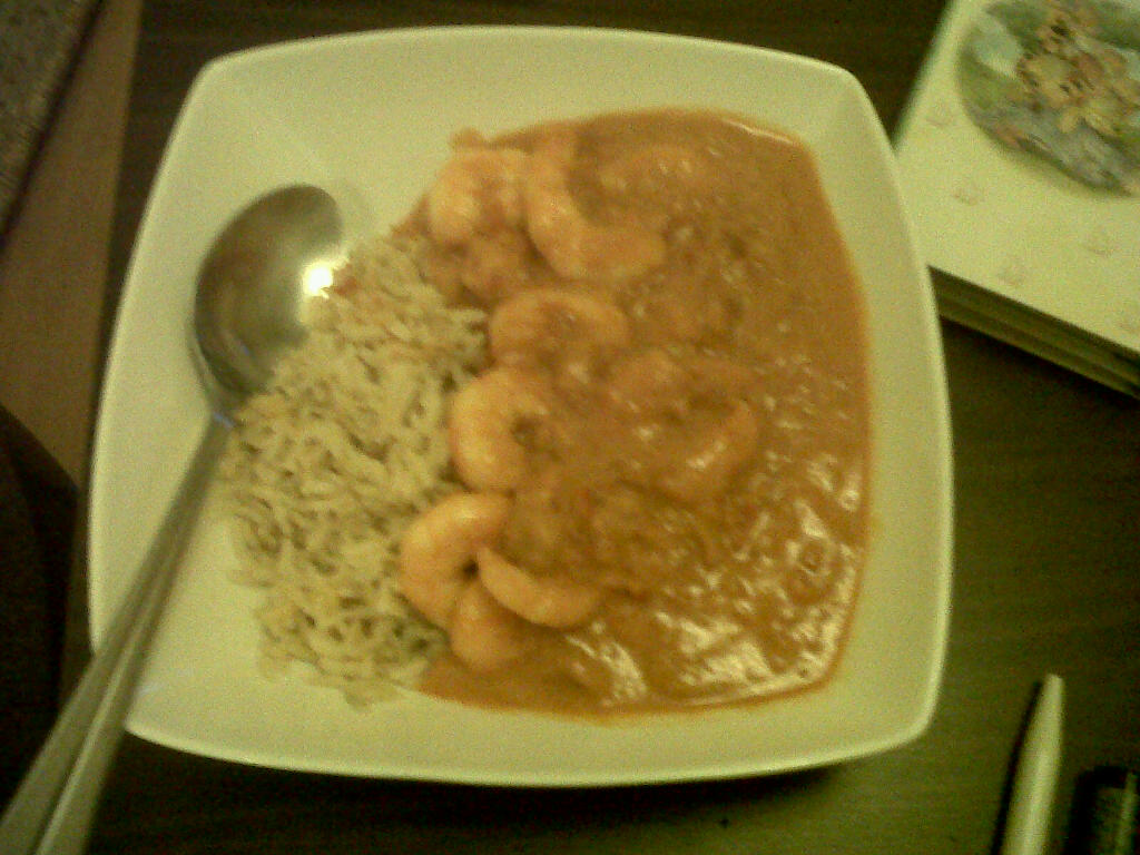 Dinner I made a saag aloo followed by a prawn curry. It was a weightwatcher recipe at only 1.5 points. The saag aloo was 2 points and I had 3 points worth of rice. Feast!!
